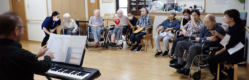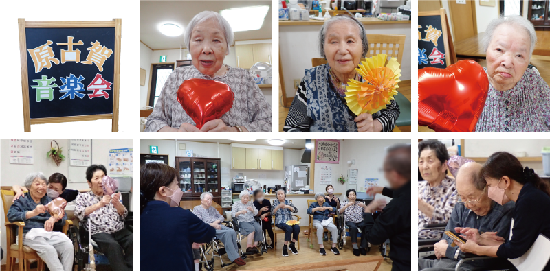ご利用者の皆様には、ハートのバルーンやお花の飾りを持って、演奏を楽しんでいただきました❣️