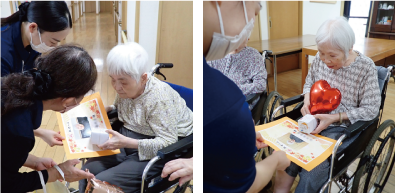 最後に敬老の日のスタッフ特製グリーティングカードとカステラをお渡しし、敬老会は無事に終了。
