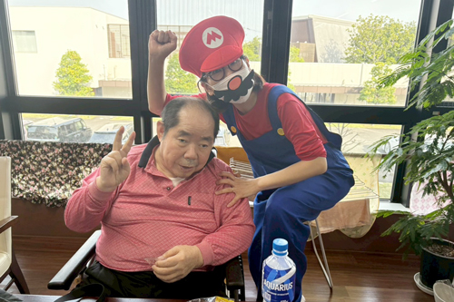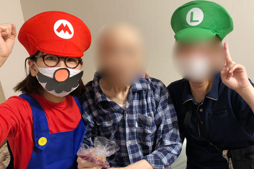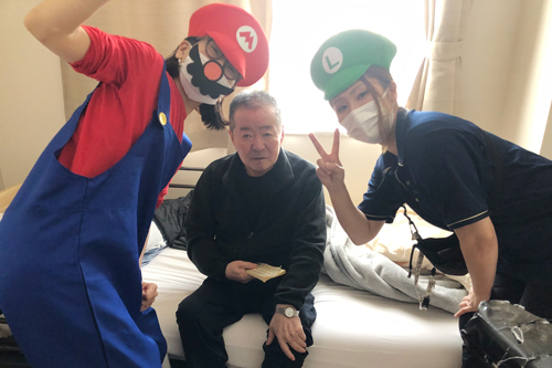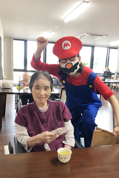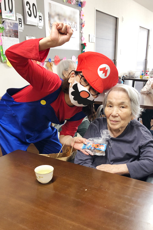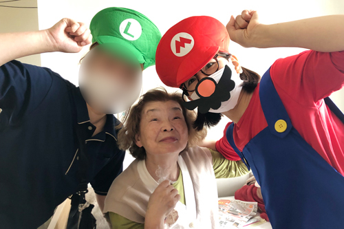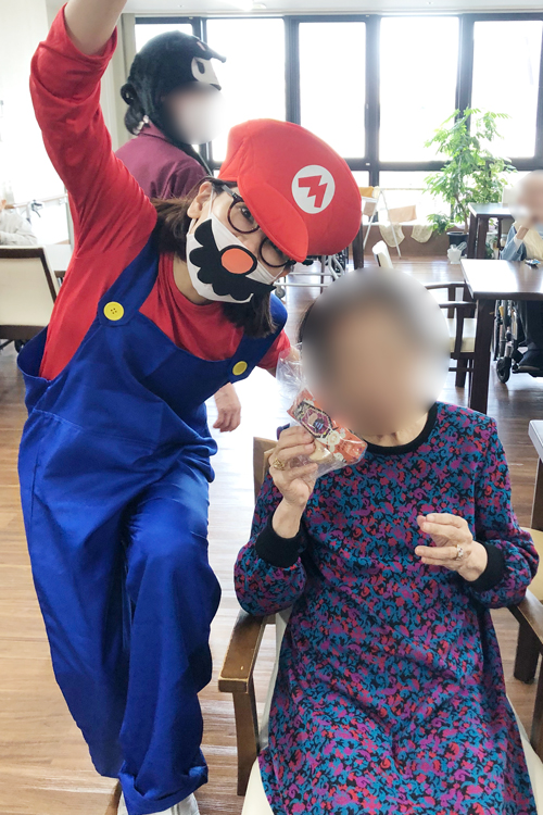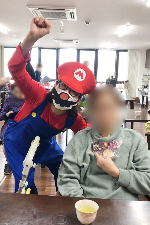 突然のマリオの登場に、ご利用者様たちは『何?』と不思議そうなお顔😶❓