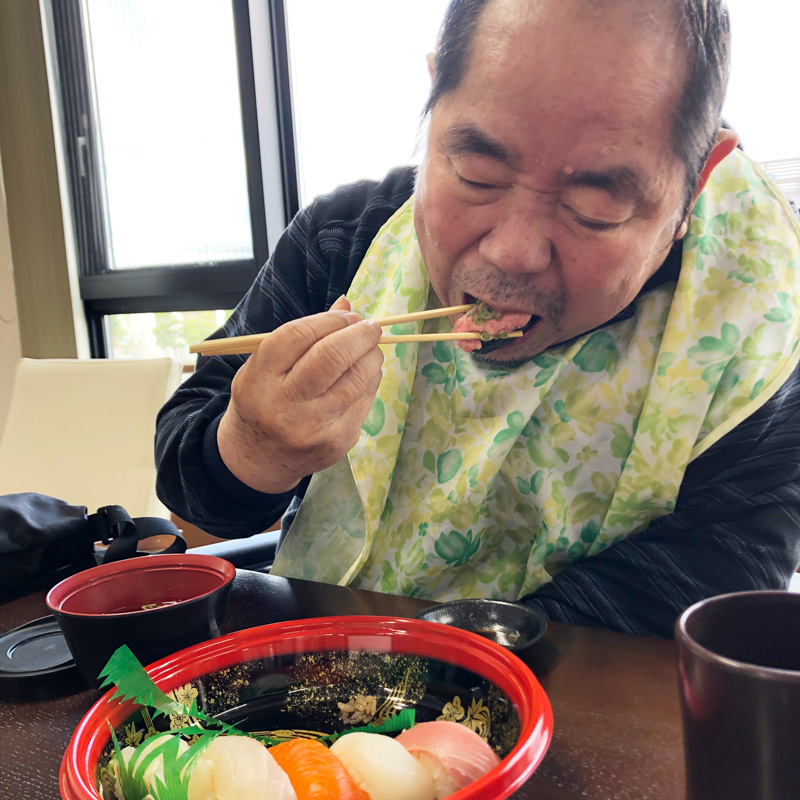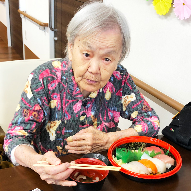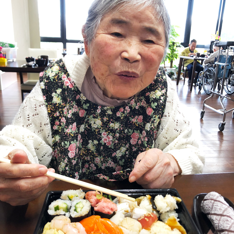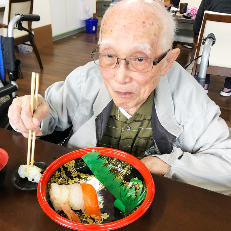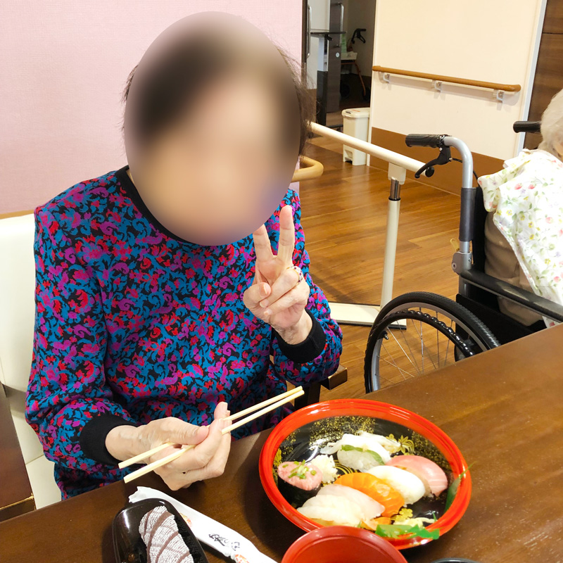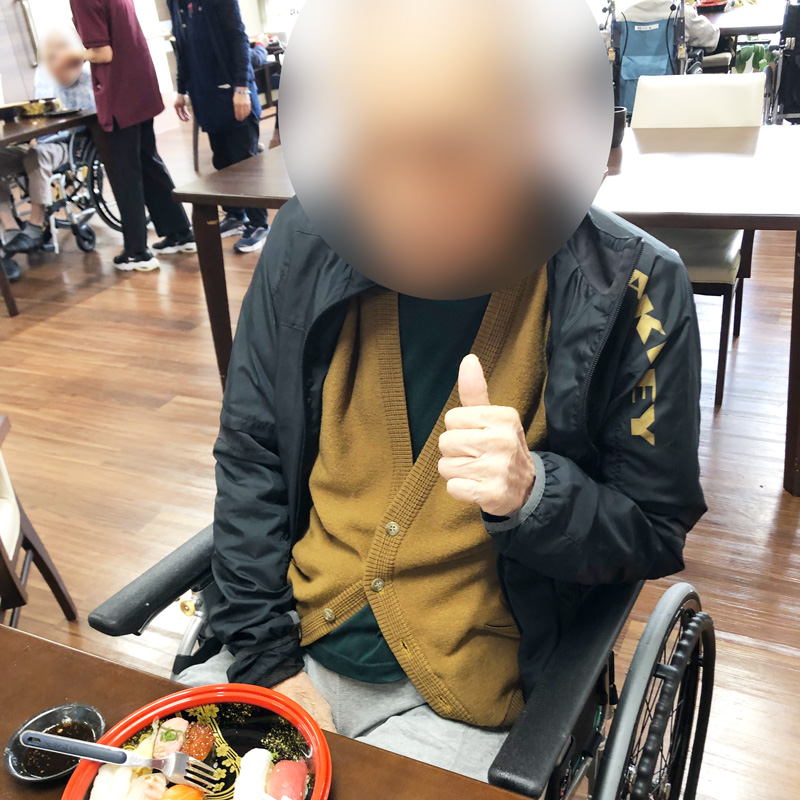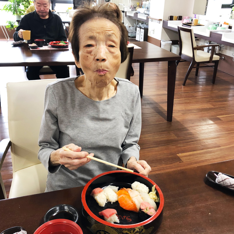 ご利用者様からは「美味しいね〜」「たまには寿司もよかね」とのお言葉をいただき、豪華なお寿司ランチを大変喜んでくださいました。