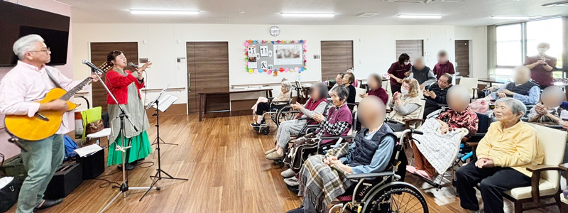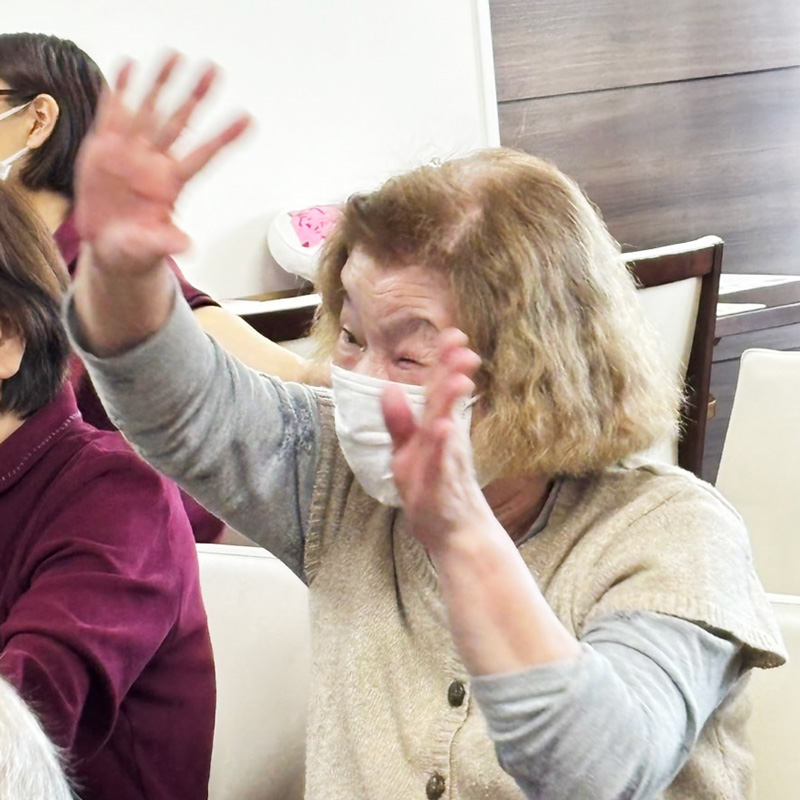 リズムに乗って拍手をされたり、一緒に歌われるご利用者様も。