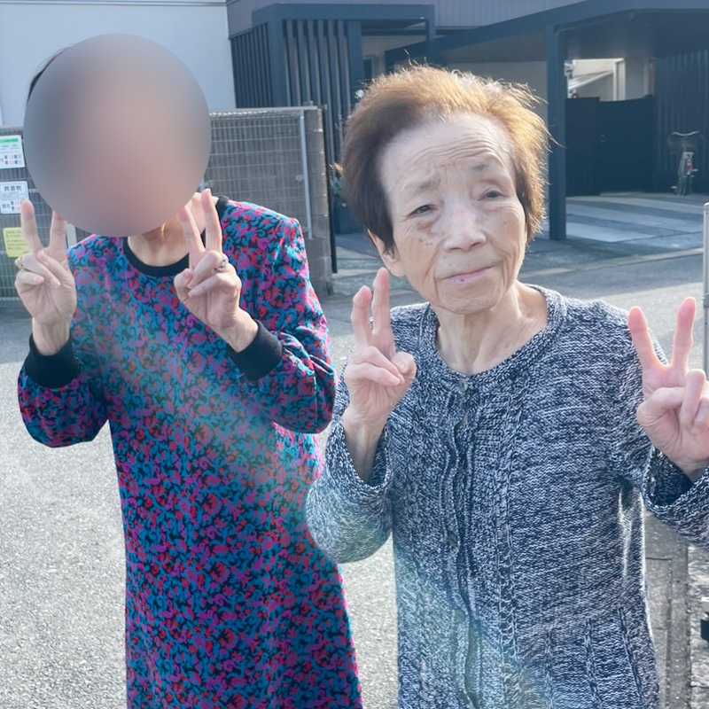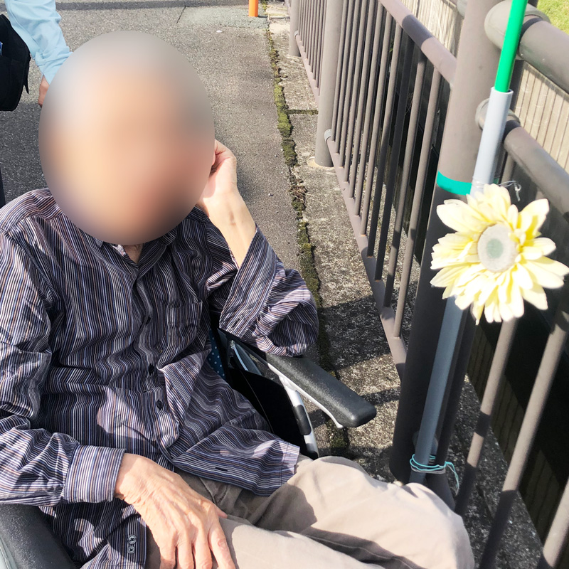 「あいちゃんけいちゃん、お久しぶり~」と手を振られるご利用者H様。