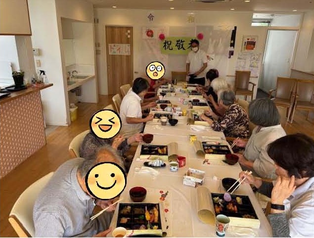 日頃の感謝を込めて利用者様にお取り寄せグルメの特製弁当を一緒にいただきました。